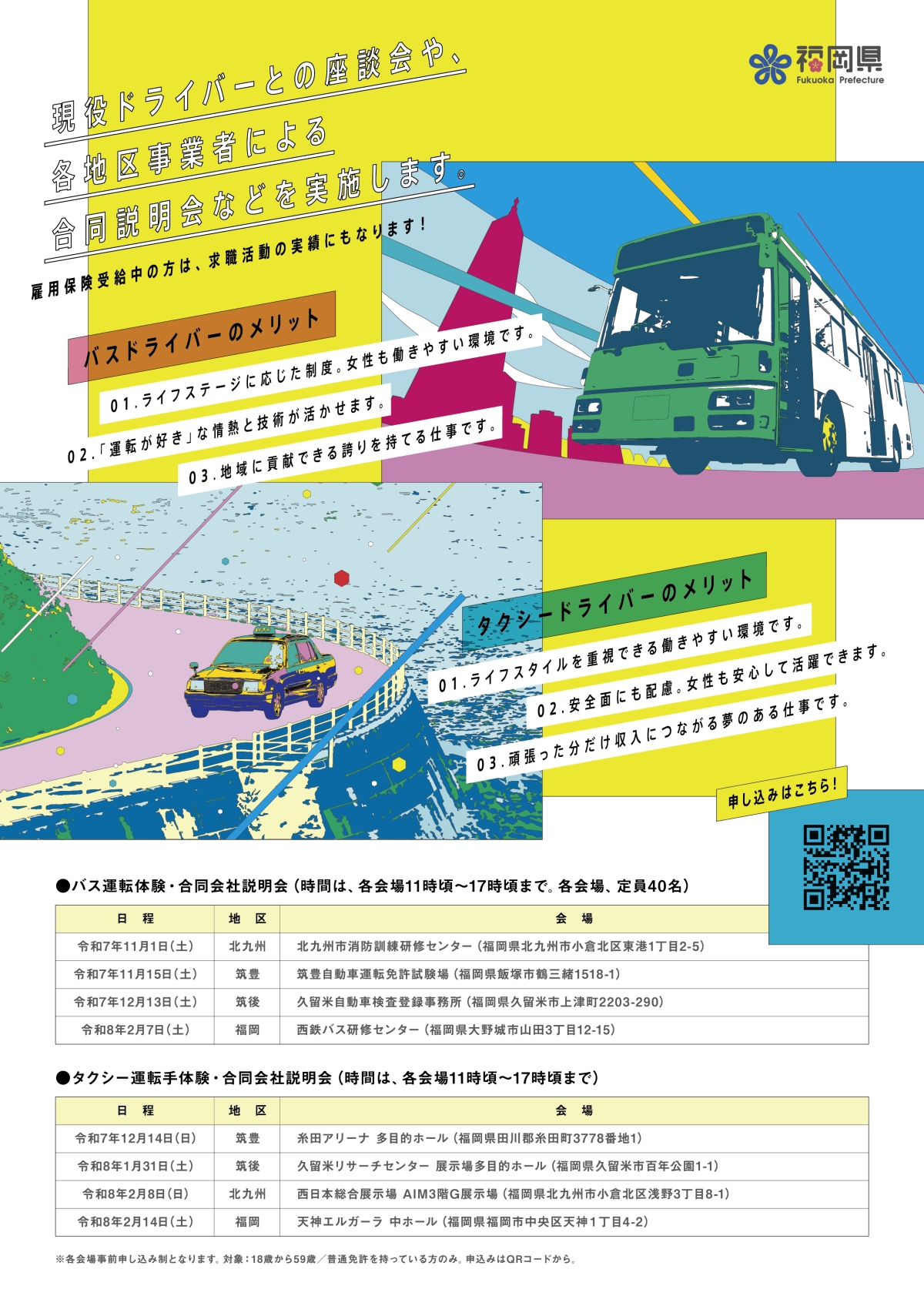 今年度、福岡県では県内4地区にてバス運転体験会・合同会社説明会を開催します。