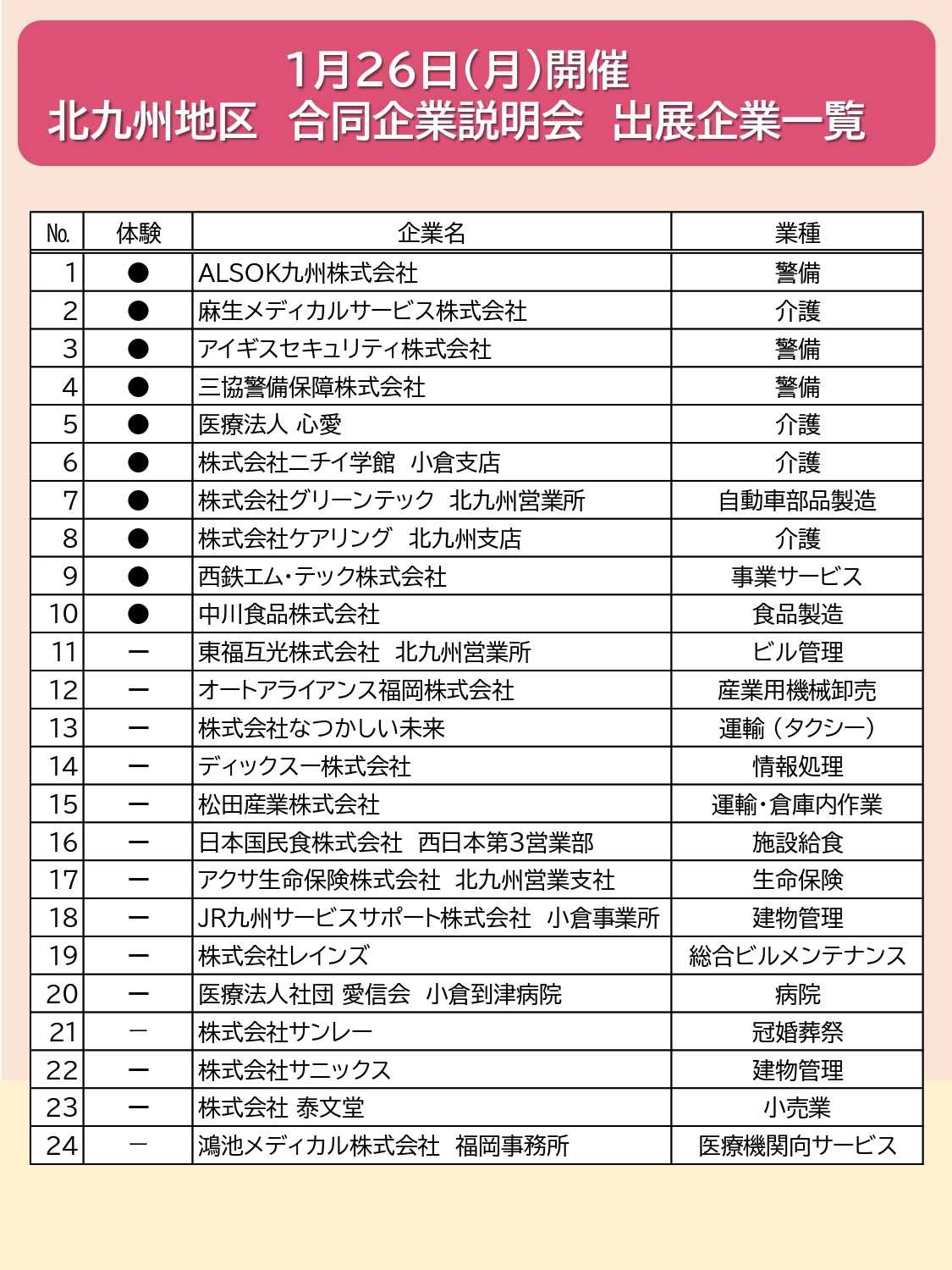 【出展企業決定】1月26日(月)北九州地区 合同企業説明会 開催!