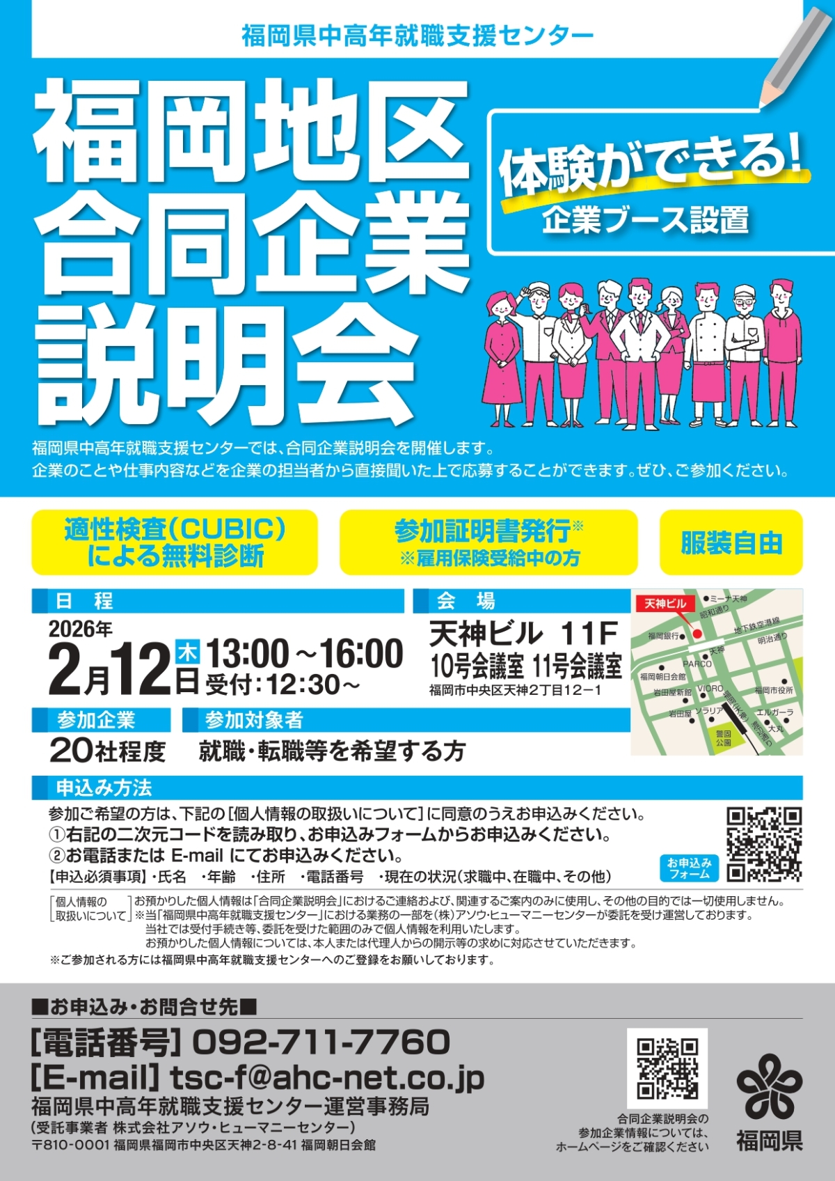福岡県中高年就職支援センター主催の合同会社説明会を開催します!