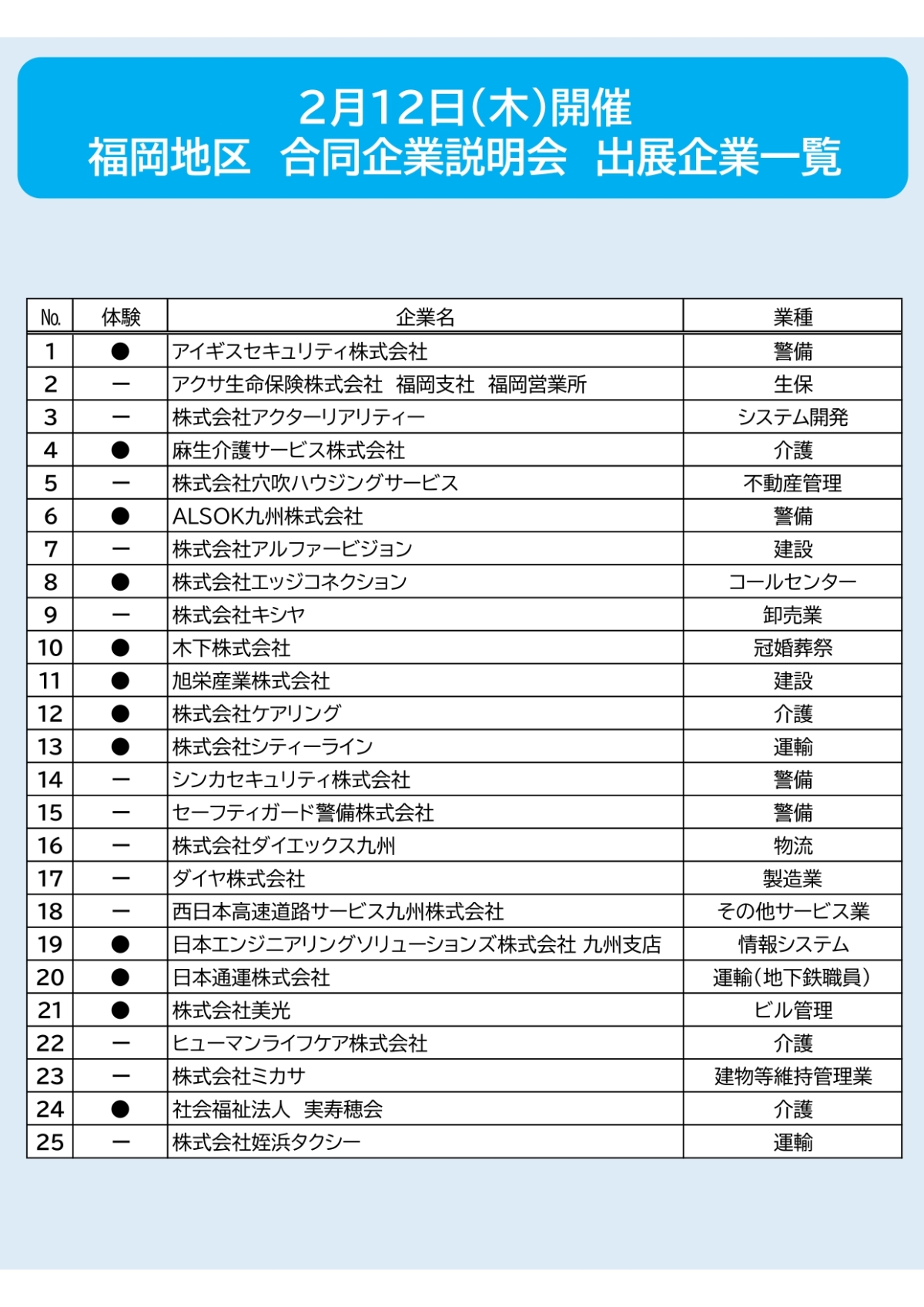 【出展企業決定】2月12日(木)福岡地区 合同企業説明会 開催!